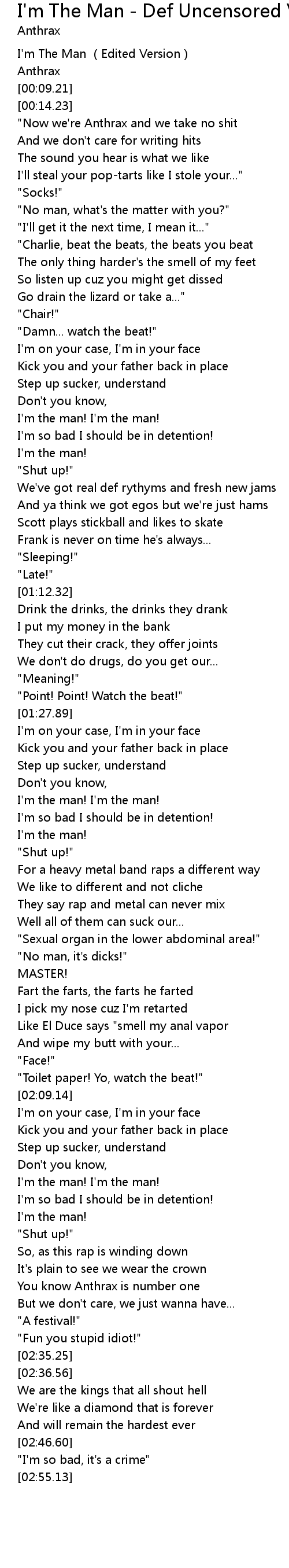 | [00:02.35] | I' m The Man Edited Version |