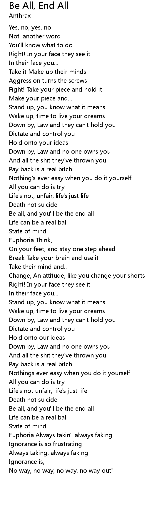 Be all, and you'll be the end all |