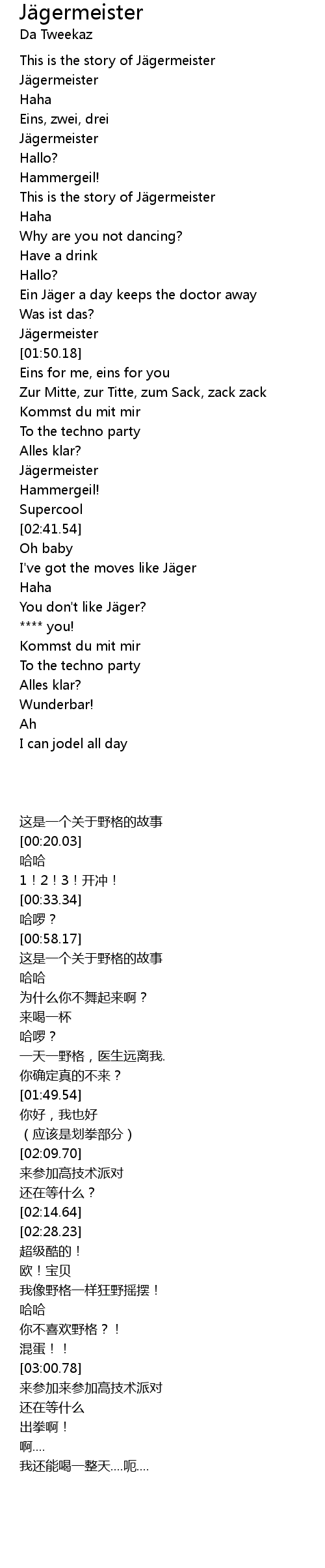 | [00:20.03] | Jägermeister |