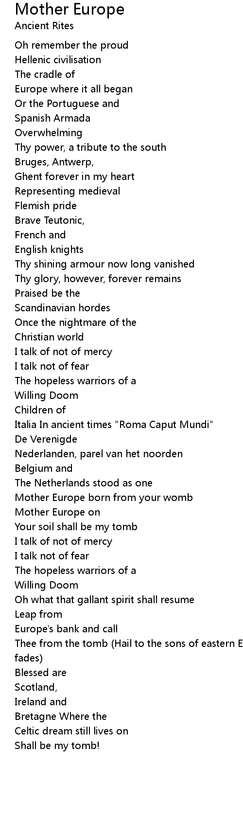 Mother Europe born from your womb |