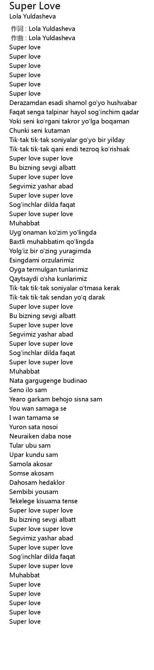 | [00:00.000] | zuò cí : Lola Yuldasheva |