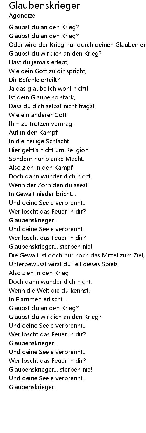 | Oder wird der Krieg nur durch deinen Glauben entfacht? | |