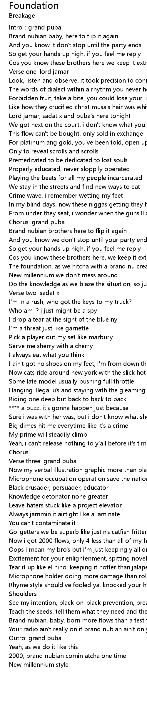 | Your radio ain' t really on if brand nubian ain' t on your dial | |
