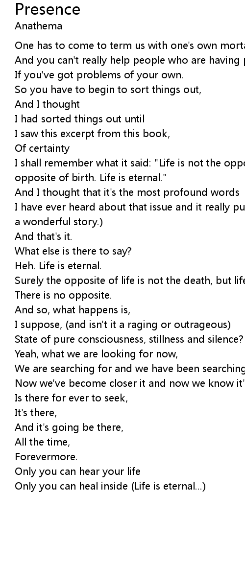 I shall remember what it said: "Life is not the opposite of death. Death is the opposite of birth. Life is eternal." |