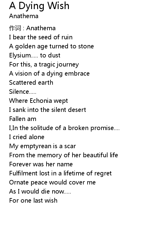 | Song | A Dying Wish |