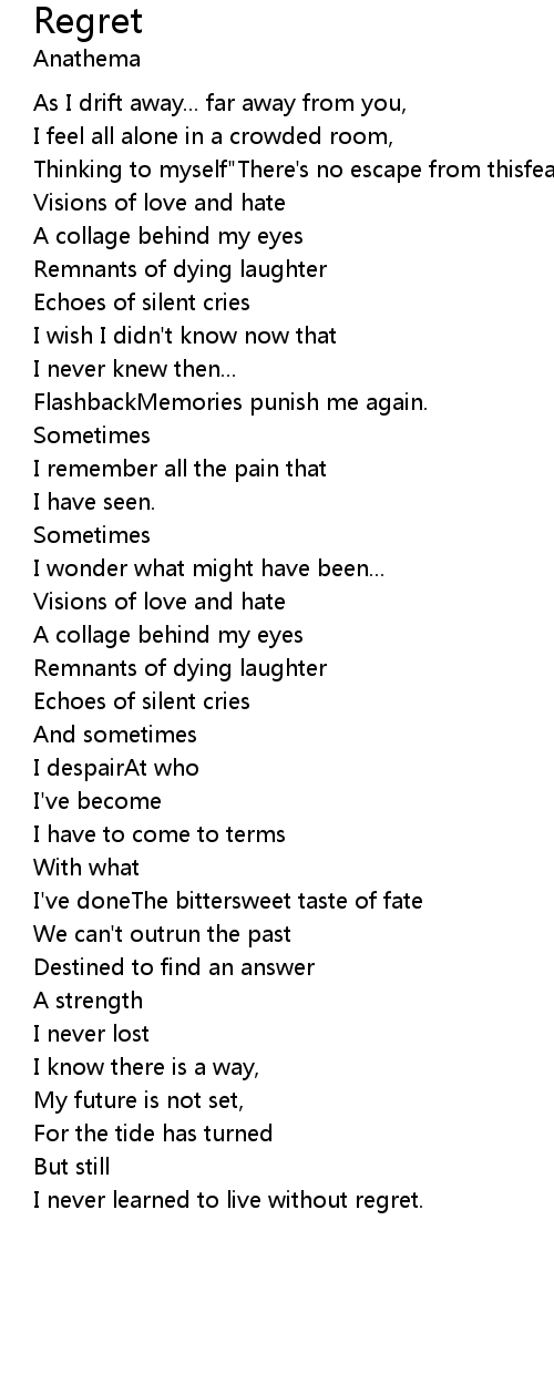 I never learned to live without regret. |