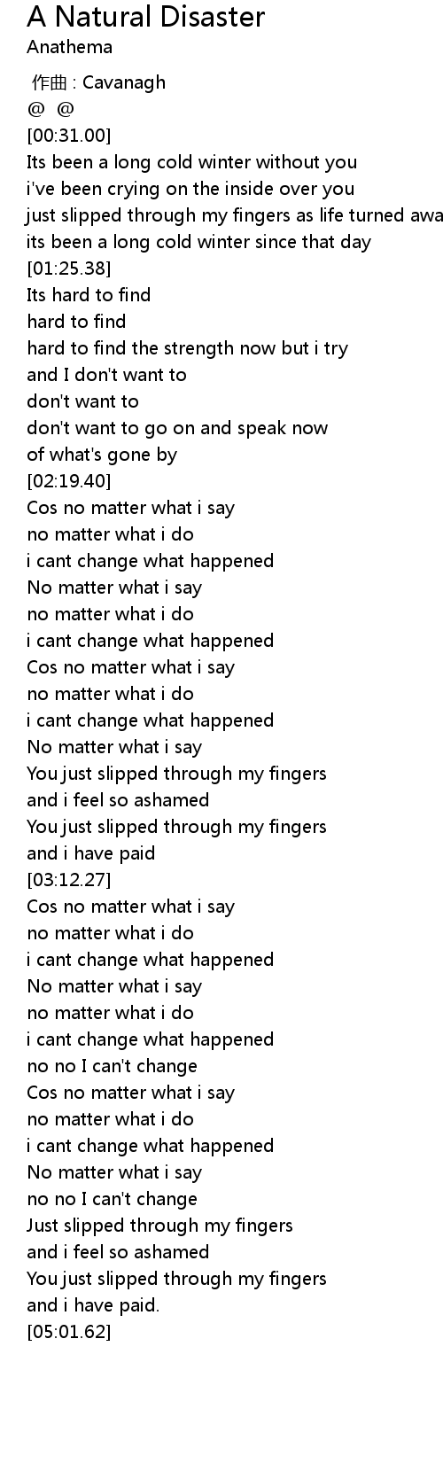 | [04:18.73] | i cant change what happened |