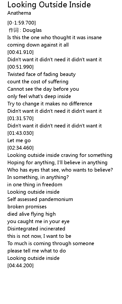 | [04:23.260] | Looking outside inside |