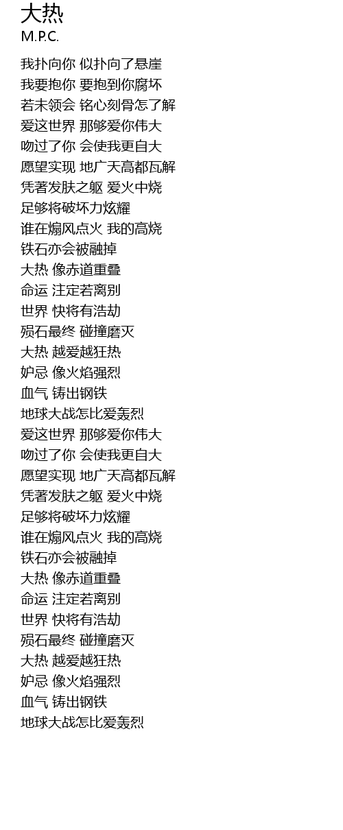 | [01:31.03] | 大热 越爱越狂热 |