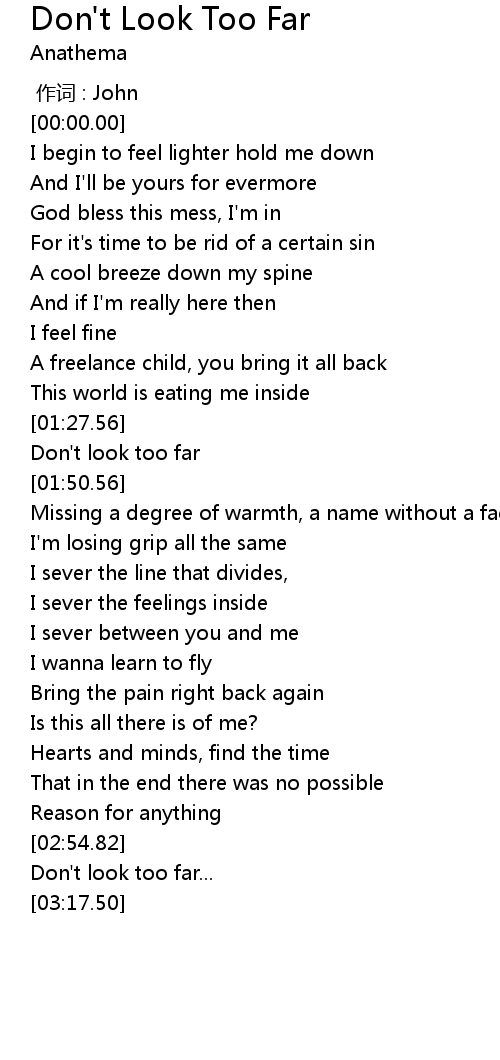 | [01:57.45] | Missing a degree of warmth, a name without a face |