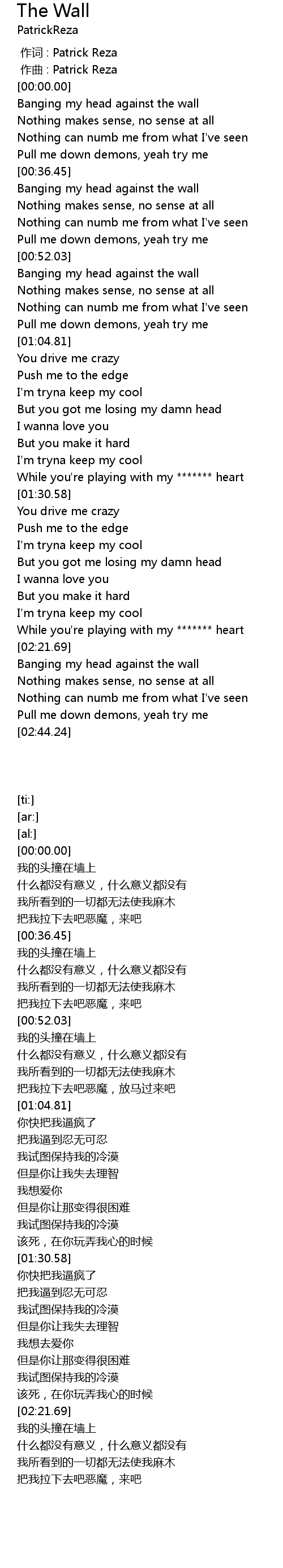 | [00:00.000] | zuò qǔ : Patrick Reza |