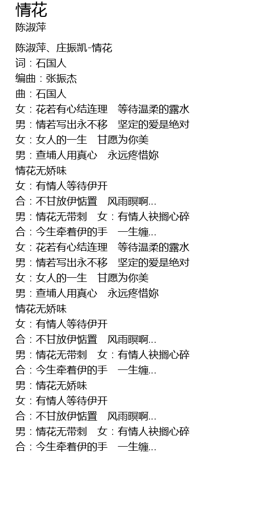 | [00:00.00] | 陈淑萍、庄振凯-情花 |