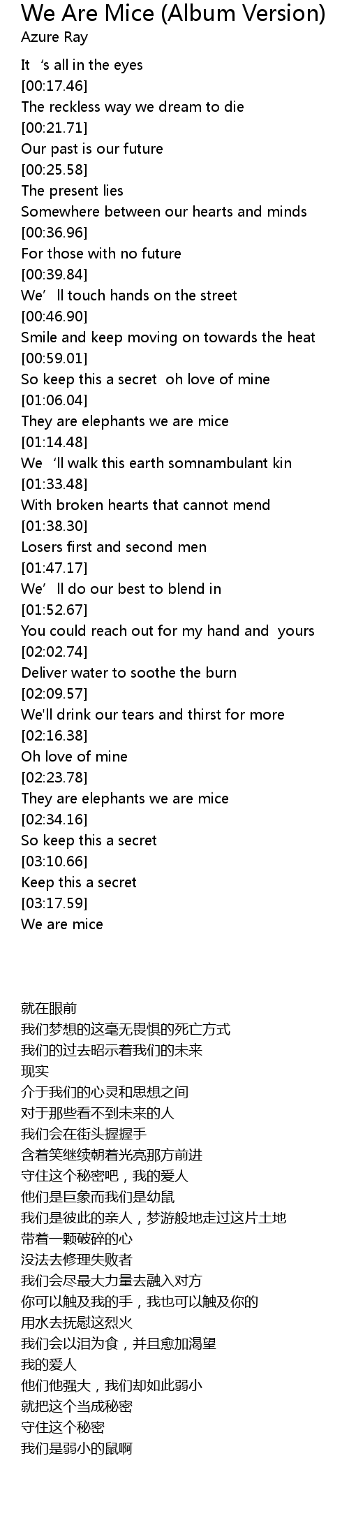 | [03:22.47] | We are mice |