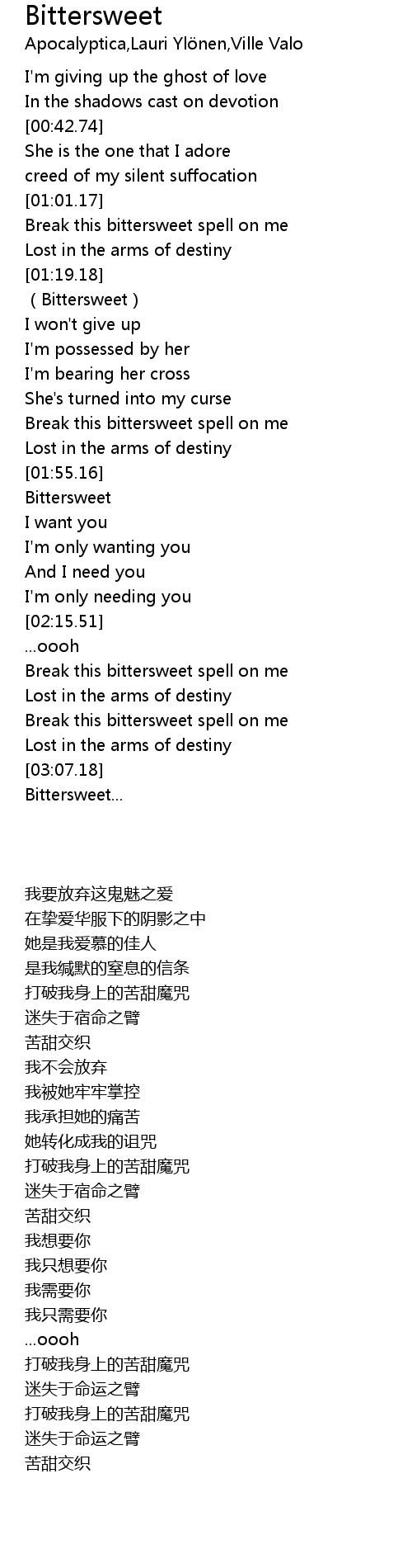 | [01:55.39] | Bittersweet |