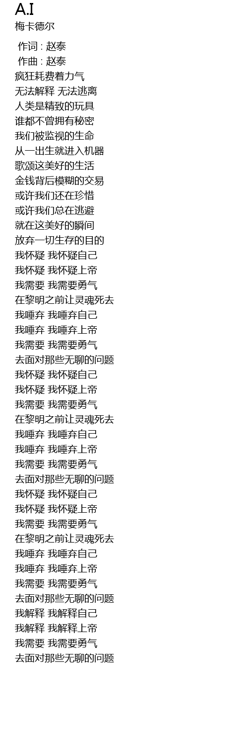 | [02:50.58] | 我怀疑 我怀疑上帝 |