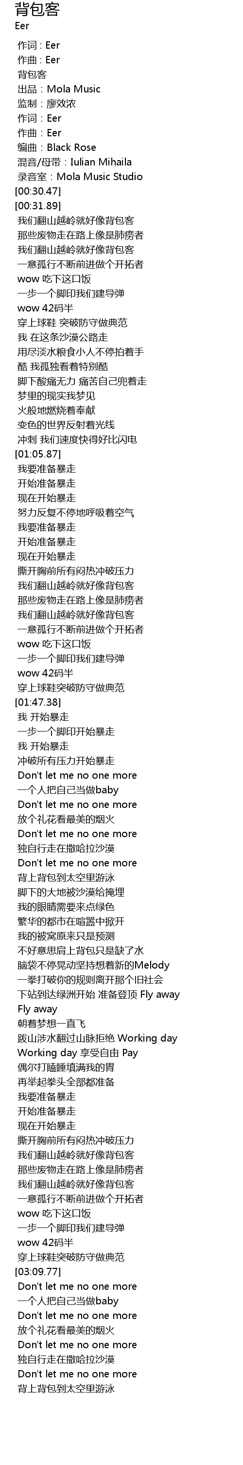 | [02:30.98] | 跋山涉水翻过山脉拒绝 Working day |