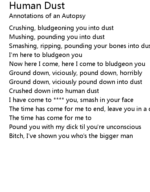 Crushing, bludgeoning you into dust |