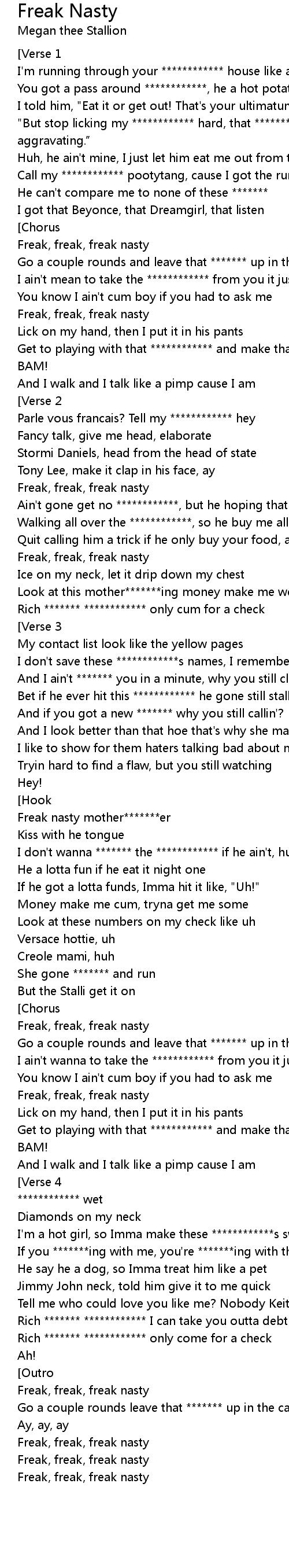 | [00:16.315] | "But stop licking my ************ hard, that ************ aggravating.” |