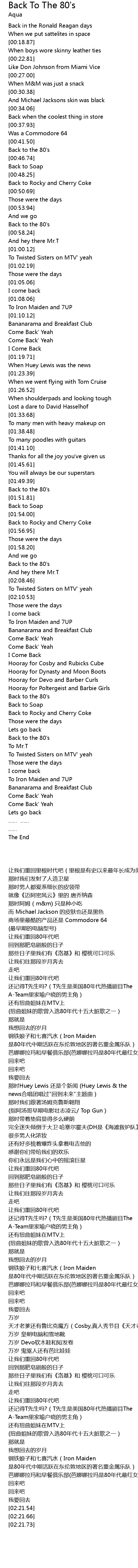 | [02:18.22] | Back to the 80' s |
