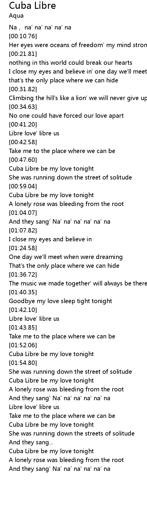 | [00:20.56] | Her eyes were oceans of freedom' my mind strong like a kingdom |
