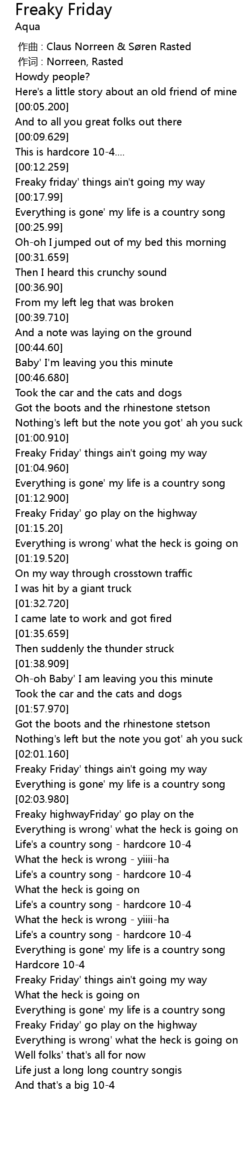 | [02:13.799] | Freaky highwayFriday' go play on the |