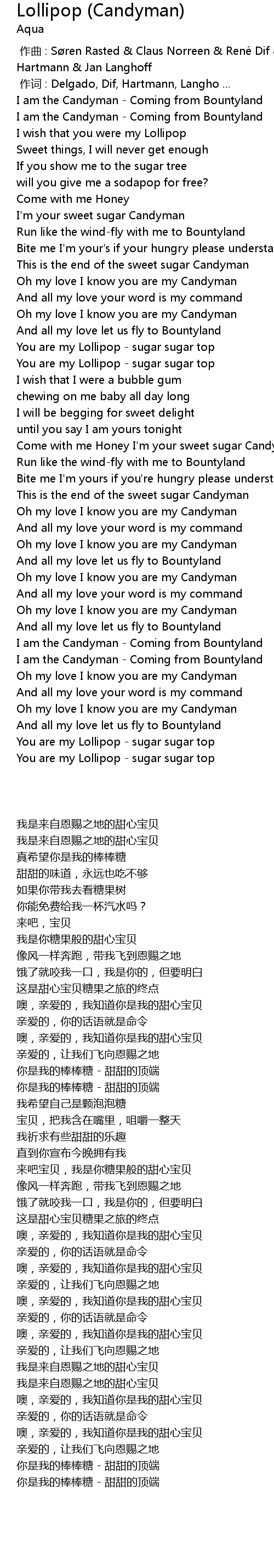 | [01:17.0] | You are my Lollipop sugar sugar top |