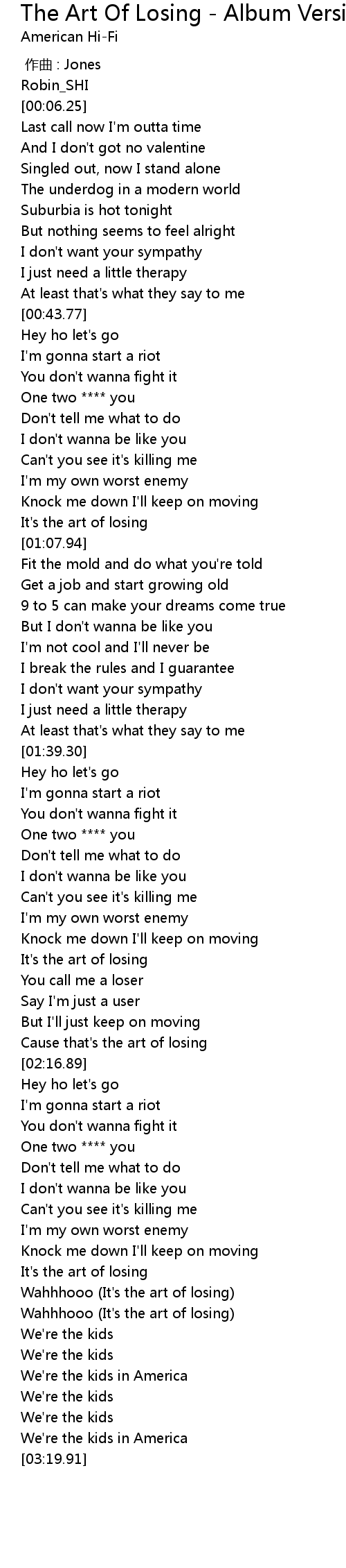 | [03:01.69] | Wahhhooo It' s the art of losing |