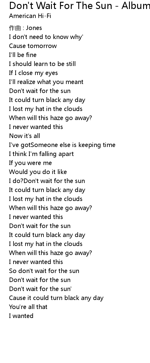| So don' t wait for the sun | |