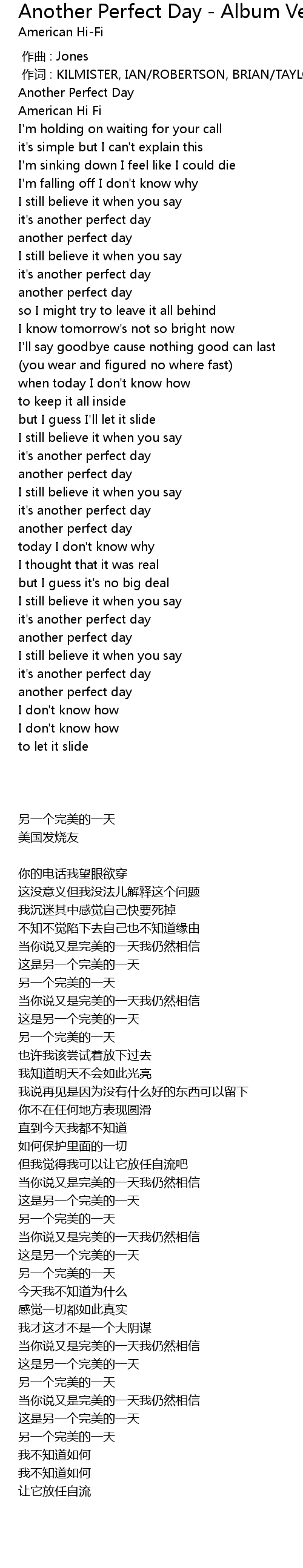 | [00:04.38] | Another Perfect Day |