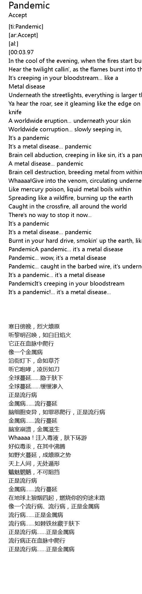 Pandemic... caught in the barbed wire, it's underneath the skin |