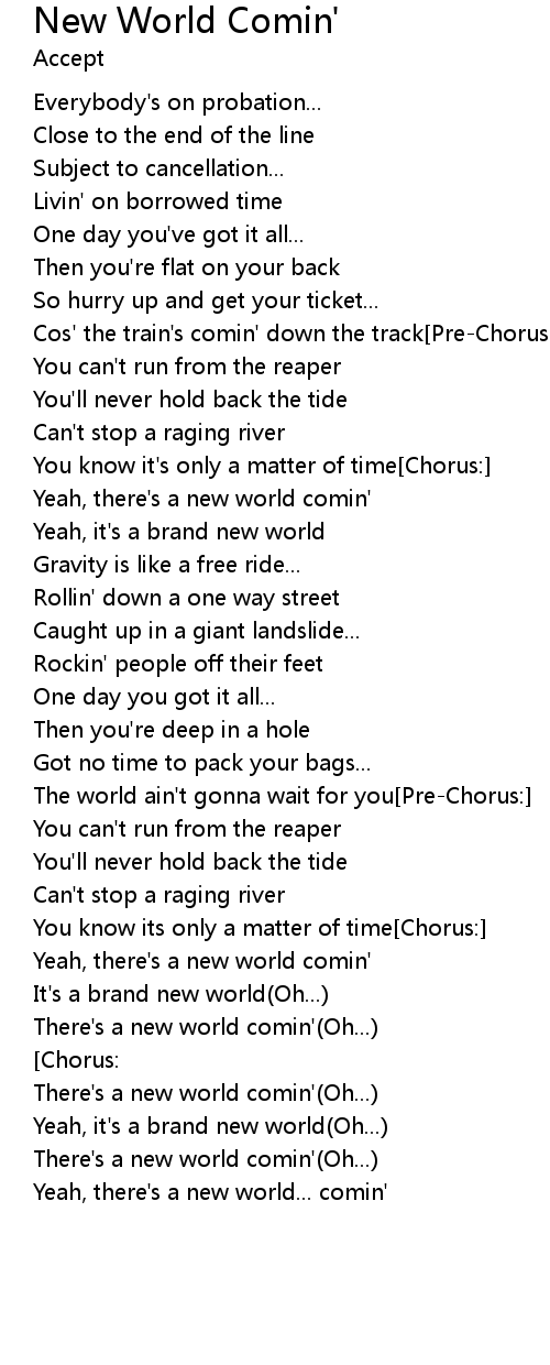 Yeah, it's a brand new... world[Solo][Chorus:](Oh...) |