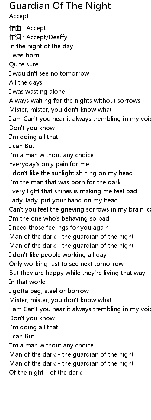 | Song | Guardian Of The Night |