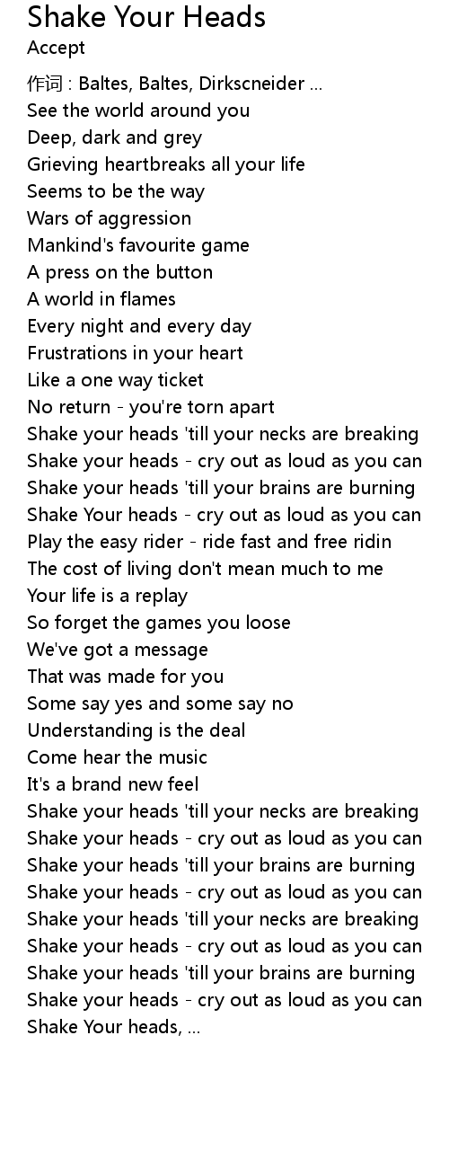 | 作词 : Baltes, Baltes, Dirkscneider ... | |