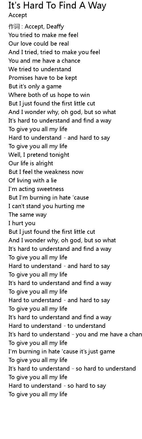 | It' s hard to understand and find a way | |