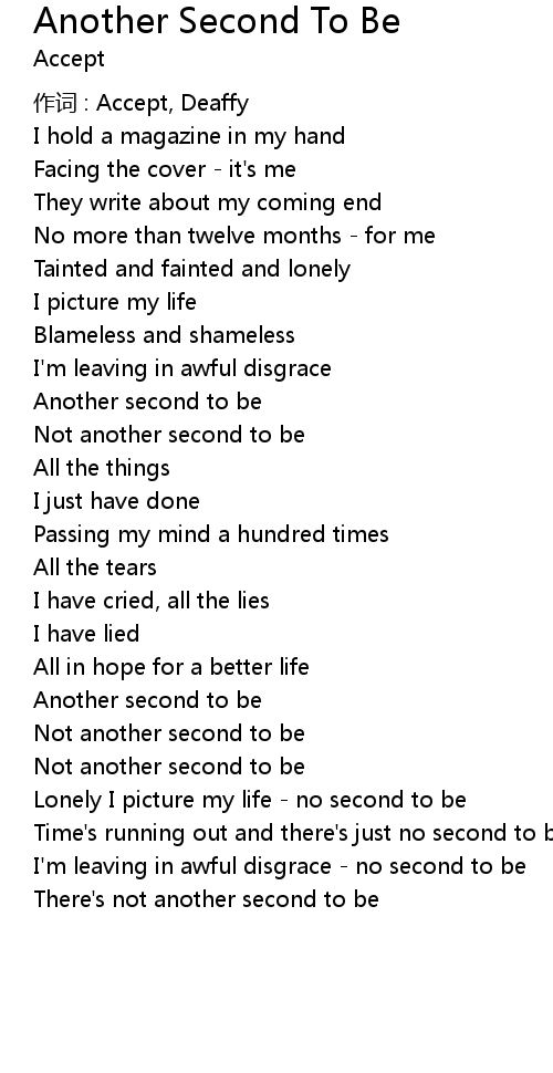 | Time's running out and there's just no second to be | |