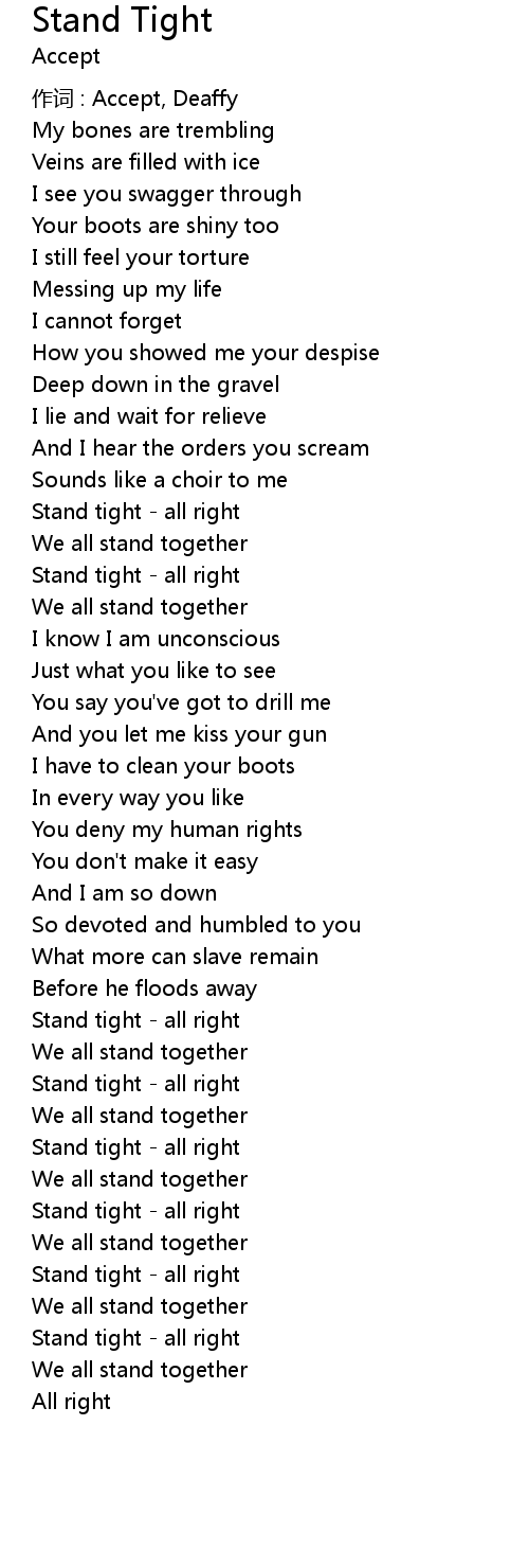 | Stand tight all right | |