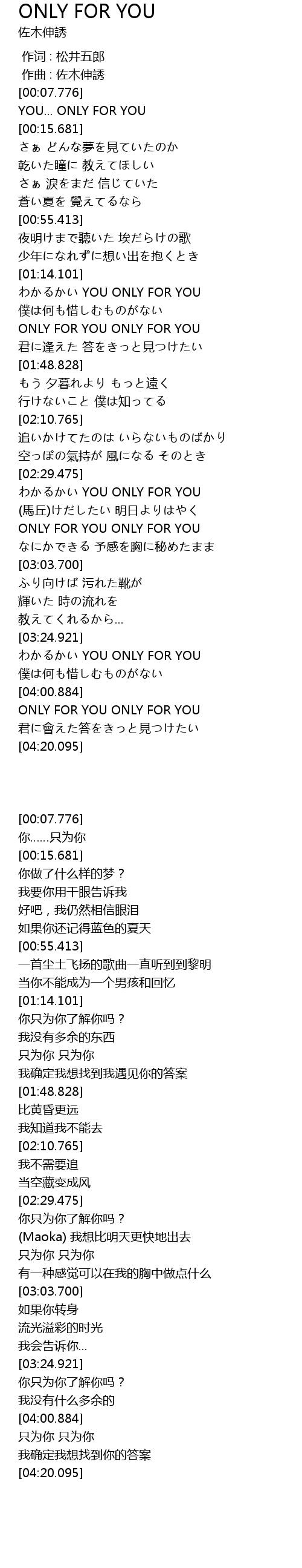 | [04:01.411] | ONLY FOR YOU ONLY FOR YOU |