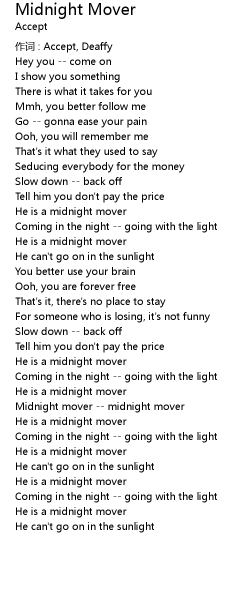 | Midnight mover midnight mover | |