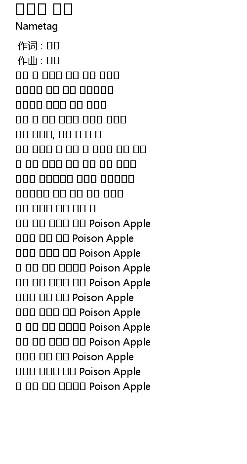 | [01:55.729] | 내 피를 모두 마셔버린 Poison Apple |