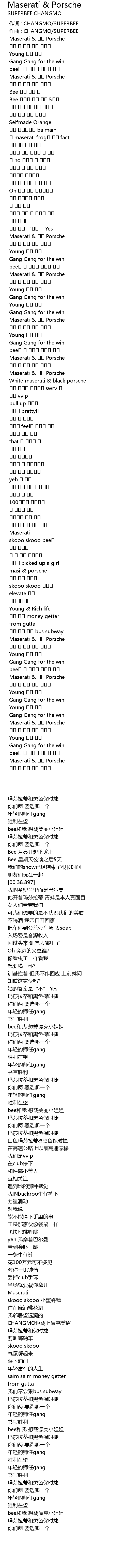 | [00:00.000] | 作词 : CHANGMO/SUPERBEE |