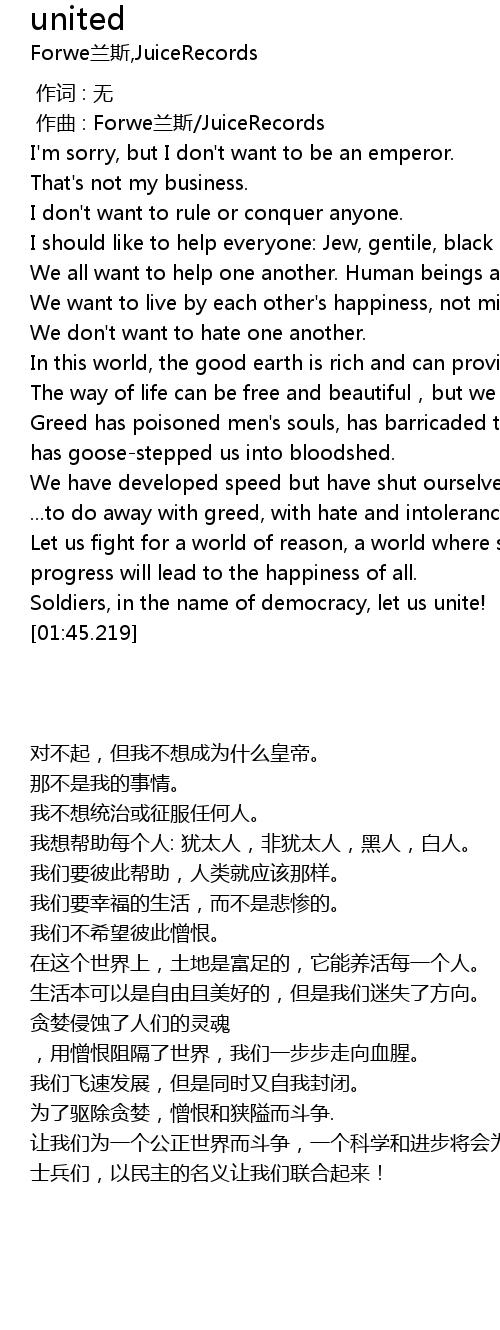 | [01:40.759] | Soldiers, in the name of democracy, let us unite! |