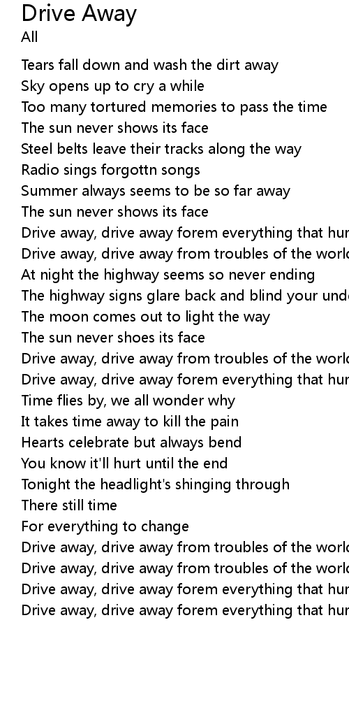 Drive away, drive away from troubles of the world |