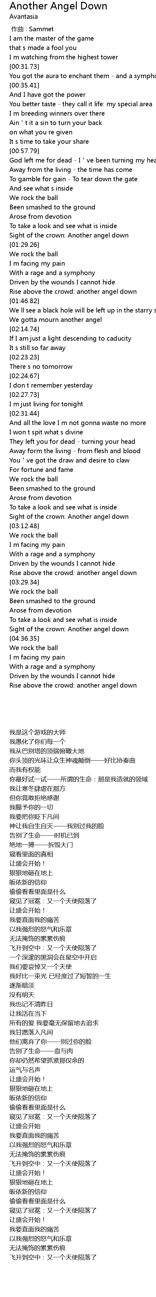 | [04:32.23] | Sight of the crown: Another angel down |