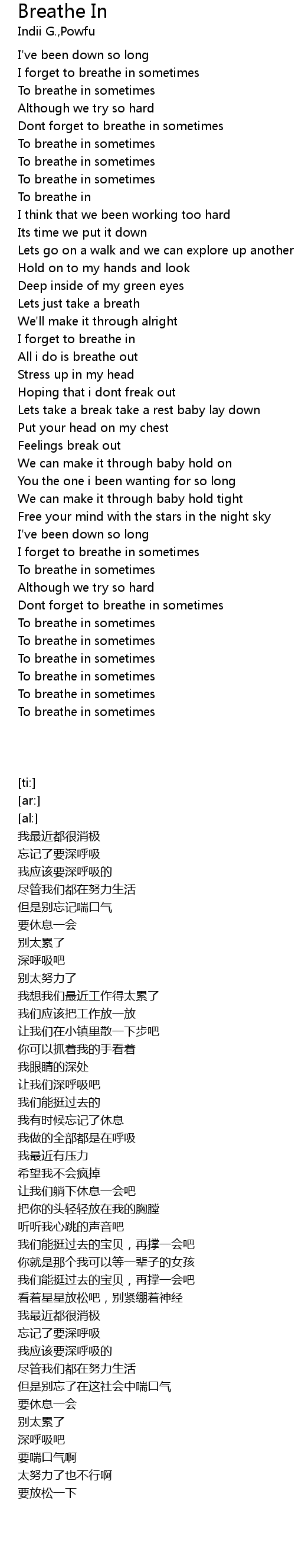 | [00:17.15] | Dont forget to breathe in sometimes |