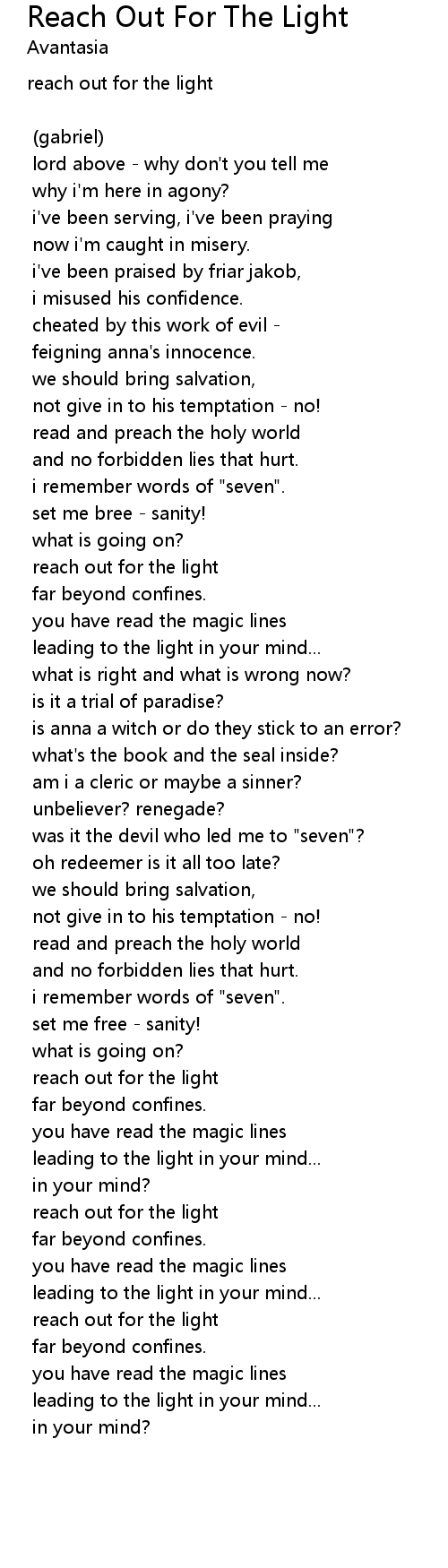 reach out for the light |