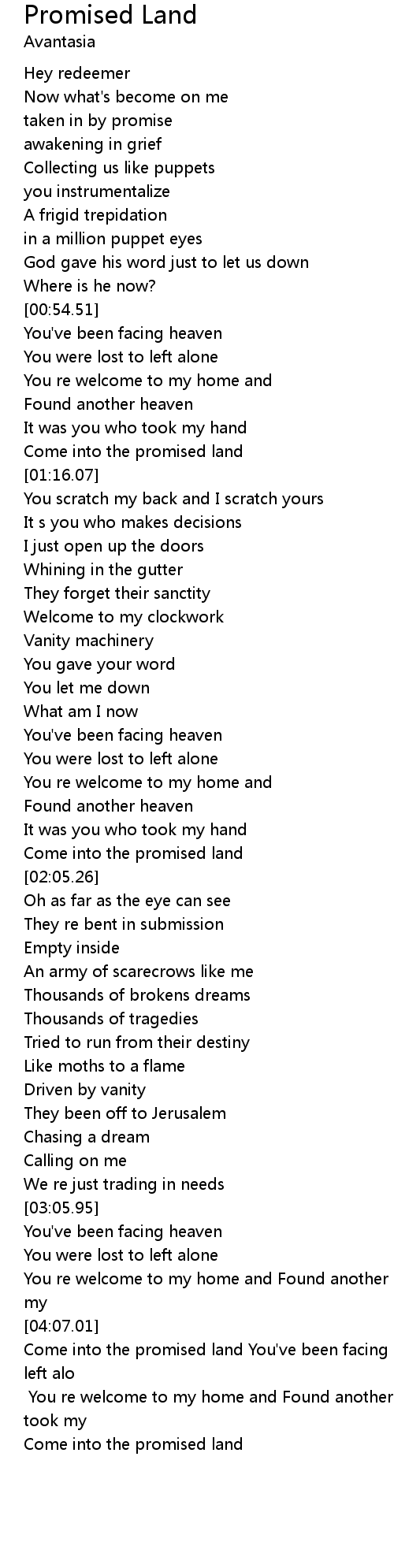 Come into the promised land You've been facing heaven You were lost to left alo |