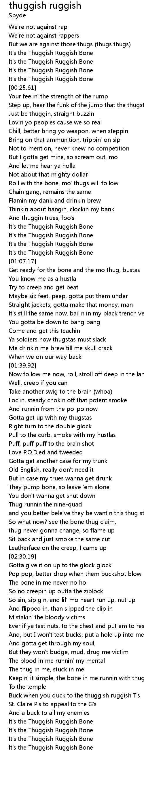 Get ready for the bone and the mo thug, bustas |