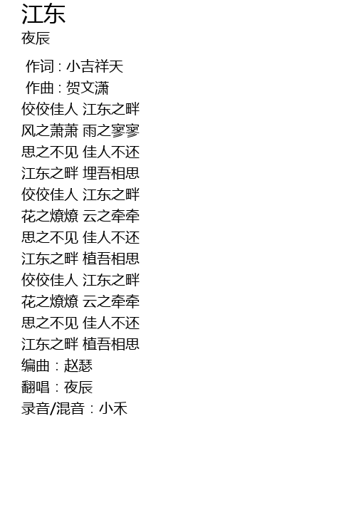 | [00:29.69] | 江东之畔 埋吾相思 |