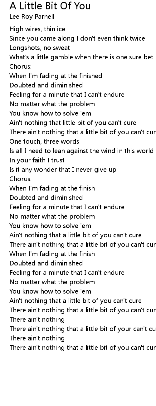 There ain't nothing that a little bit of your can't cure |