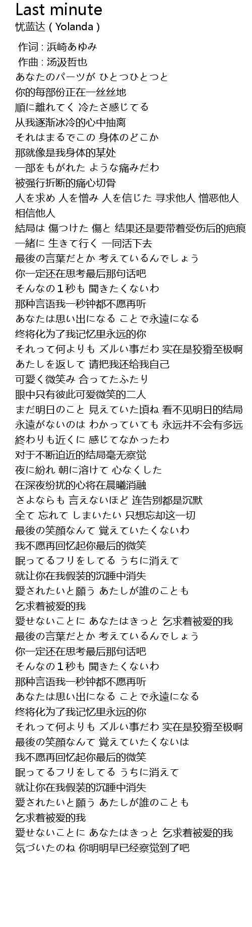 | [03:51.892] | 愛せないことに あなたはきっと 乞求着被爱的我 |
